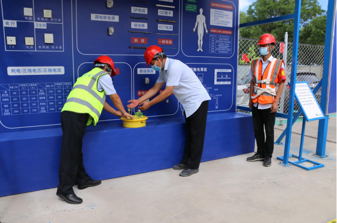 培训基地主要设置了高处坠落、边坡坍塌、触电伤害等25项安全体验项目,能够最大程度模拟真实场景下的安全生产事故,让体验者亲身感受事故发生的后果,进一步增强安全防范意识。在安全体验过程中,首先由现场讲解员详细介绍体验基地各安全培训项目和实际施工过程中容易出现的安全隐患,并组织参加人员对现场体验项目进行了实地操作演练;最后向全体人员发放了安全知识宣传资料200余份。